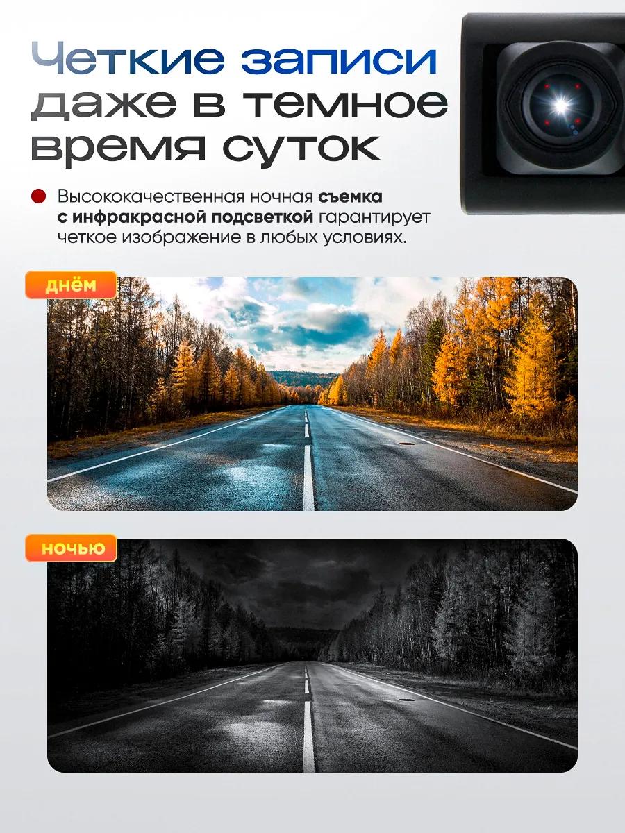 Регистратор оснащен функцией ночного видения, что делает его отличным помощником в условиях плохого освещения. Цикличная запись гарантирует, что вы никогда не пропустите важный момент — старые файлы заменяются новыми. Основной блок с дисплеем и черным корпусом гармонично впишется в любой салон автомобиля. Задняя камера с автозапуском помогает безопасно парковаться, отображая разметку на экране.